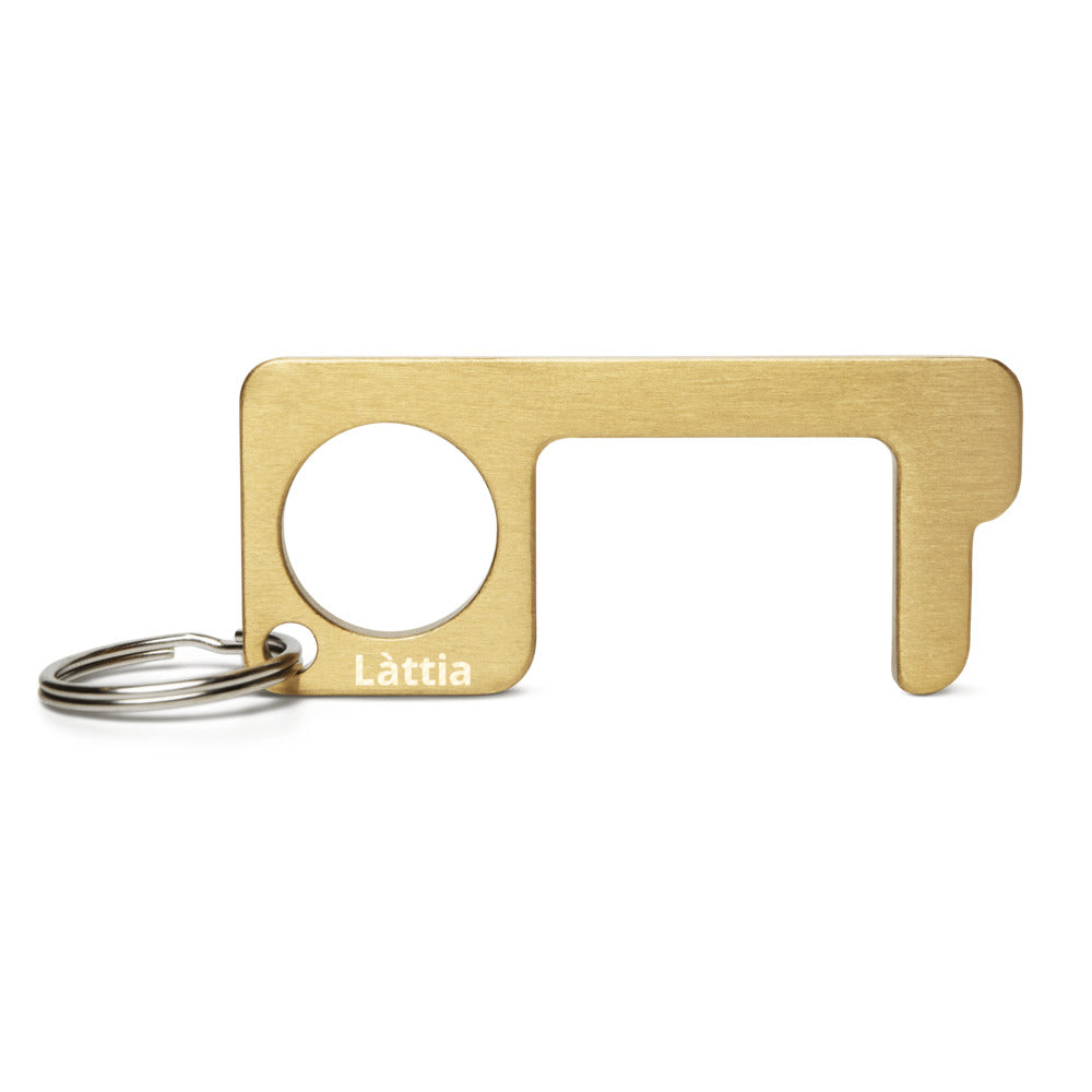 Open doors, push buttons, and pull objects with this engraved brass touch tool—it's designed to help you avoid touching commonly used surfaces and limit the spread of germs. Attach this handy tool to your keyring for easy access on the go.